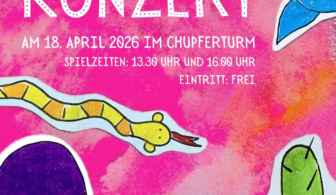 18. April 2026 Am Samstag, 18. April 2026 13.30 Uhr und 16.00 UhrEin Koffer voller Klänge, Klamauk und Krimskrams. Vier Frauen voller Neugierde, Phantasie, Wagemut und Wortwitz.Zusammen mit den Kindern begeben sich Leni, Tschagga, Mila und Paula auf eine musikalische Reise ins Blaue. Ein Abenteuer, das sie vom Wilden Westen über Marokko hin zu den grossen Fragen des Lebens führt.…